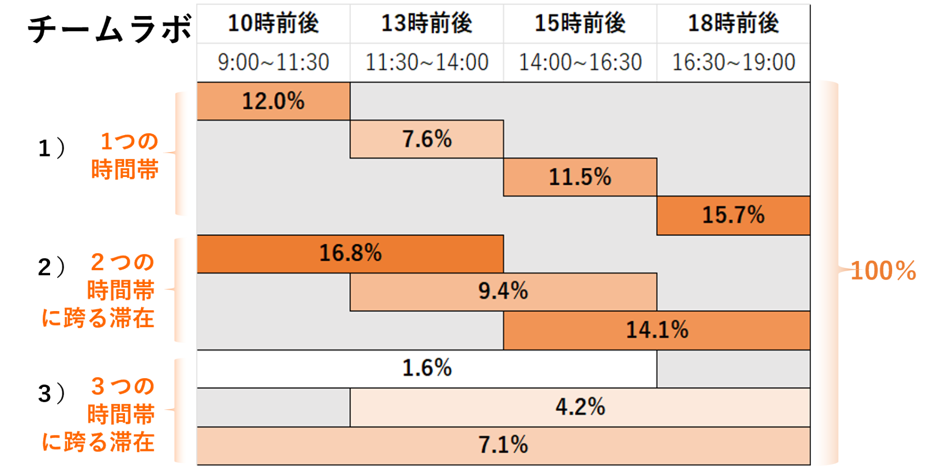 - 最初と最後の検出が含まれる時間帯別でID数を集計
